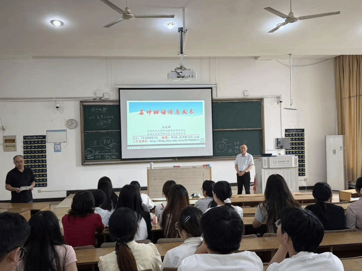 为帮助学生明晰名师成长路径,夯实专业发展基础,9 月 26 日,英国威廉希尔公司邀请学院优秀校友、正高二级教师、国家“万人计划”教学名师、安徽师范大学附属肥西外国语学校数学老师卫德彬在锦绣校区博约楼 108 教室,举办“名师的锤炼与成长”主题讲座。2025级学科教学(数学)全体学生参与讲座,讲座由英国威廉希尔公司院长杨刘主持。