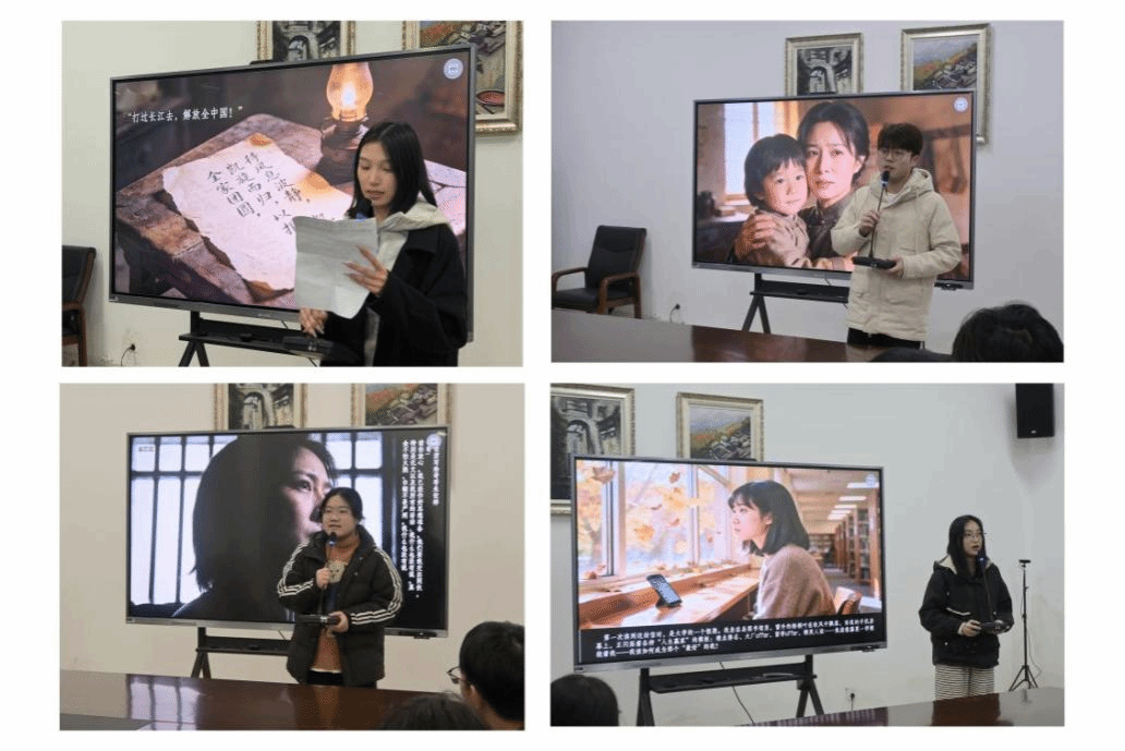 活动伊始,同学们依次登台,深情讲述革命故事、诵读英雄家书。江思瑶诵读渡江战役英烈主题家书《一纸家书过长江》,在跨越时空的精神对话中感悟革命初心,立志以青春之力传承渡江精神、勇担强国使命。汪诚同学讲述抗日女英雄赵一曼的泣血绝笔家书,带领大家感悟先烈舍子报国的家国情怀与坚贞不屈的革命气节,铭记英烈遗志,赓续革命精神。张梓涵同学缅怀“密码战士”林心平以生命守护机密、坚守信仰的革命事迹,感悟其舍生取义、忠诚担当的崇高精神,立志传承红色基因,以坚定初心锤炼本领、续写时代华章。张可悦分享的《金色的鱼钩》故事,将大家的思绪再次拉回那个充满信仰与温情的革命年代。