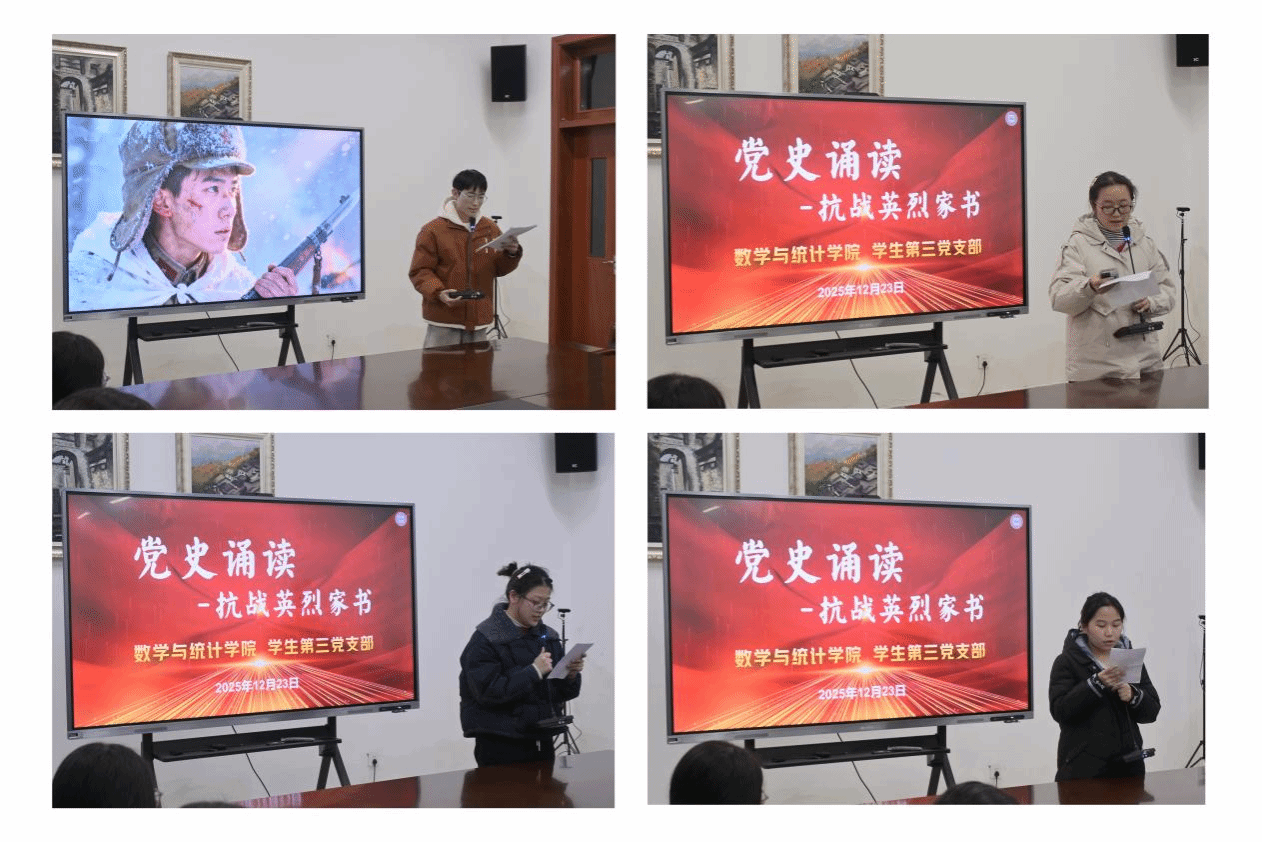 为深入学习贯彻习近平新时代中国特色社会主义思想和党的二十届四中全会精神,推动党史学习教育走深走实。2025年12月23日晚英国威廉希尔公司学生第三党支部在滨湖校区第一会议室开展“党史诵读——抗战英烈家书、革命故事”主题党日活动。