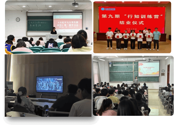 班级始终以思想铸魂作为学风建设的根基,构建“理论学习+专题培训+文化浸润”三维育人体系。常态化开展党的创新理论学习14次,动员班级骨干参与党校培训、青马工程和行知训练营,锤炼政治素养;以“阅 + 历”大讲堂、“悦读・观影”系列活动为载体,让红色基因融入青春血脉。通过专题研讨、心得分享等形式,将理论学习与师范初心相结合,引导同学们树立“为党育人、为国为才”的理想信念。思想引领成效显著,班级获评校“五四红旗团支部”,12名同学获评校级“优秀共青团员”“优秀学生干部”,为深耕学业、践行育人使命筑牢思想根基。